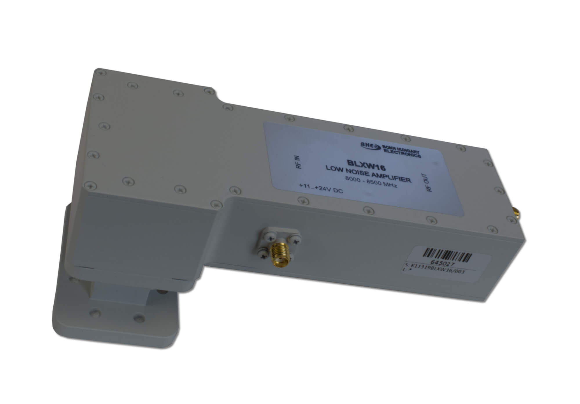 This X-band low noise amplifier is intended for use in modern solid state communications equipment, where high reliability microwave signal amplification and high dynamic range are important factors. Typical applications are in satellite ground station systems. Due to the weather-proof sealing, it can be used effectively in harsh environmental conditions.