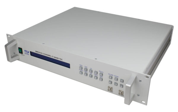 The BMCD143 is a 3-channel C-band indoor tracking downconverter. The input filtering is followed by a two stage downconverter in all channels. The channels are operated from common local sources which have very good spectral purity. The converter channels are equipped with phase and amplitude control elements in order to achieve very good phase and amplitude balance between the channels. The downconverter can be controlled and monitored via front panel keyboard and display or remotely via Ethernet, RS232 or RS422.