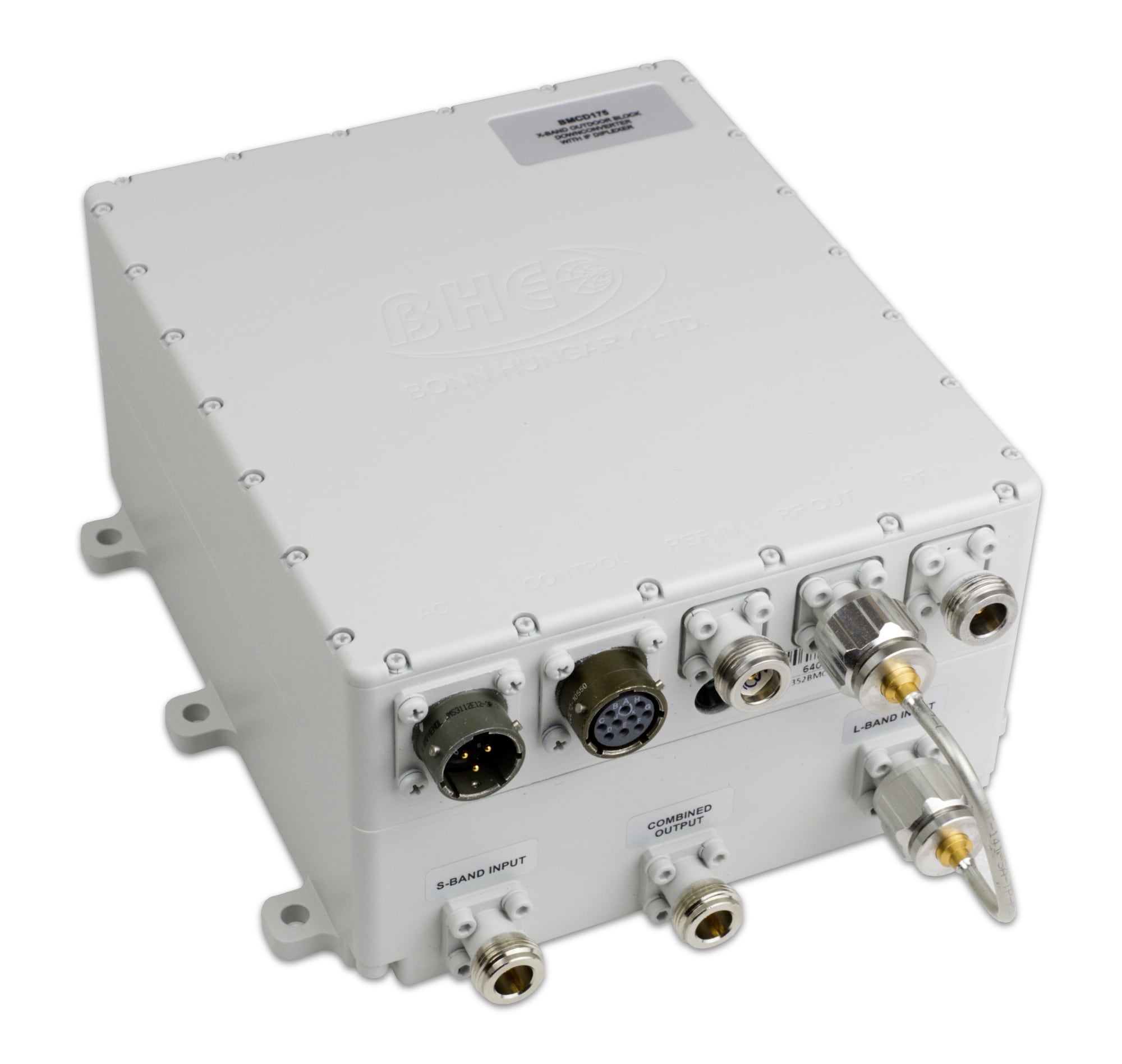 This double conversion upconverter is intended for use in professional applications in S band such as satellite earth stations. BMCU68 includes a high performance upconverter modul with a low noise local oscillators, microprocessor based monitor and control circuitry, a front panel with control keys and status display and own AC / DC power supply. BMCU68 can be controlled from the front panel (manual control) and via Ethernet (remote control). There is an AGC function within the upconverter and output level is independent of input level within a certain range.
