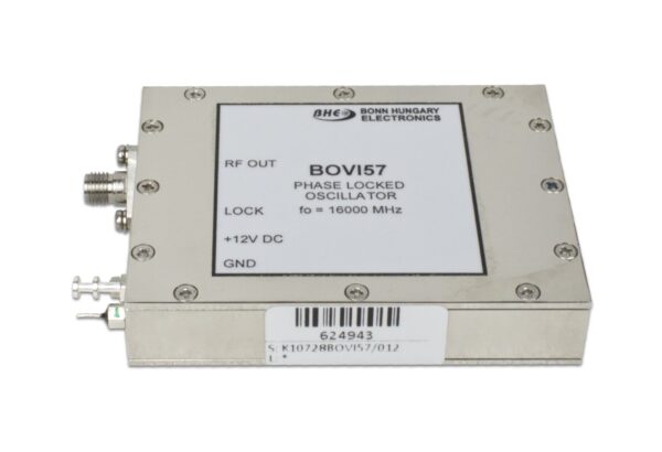 The BOVI57 is a high performance phase locked oscillator with very low phase noise and spurious level, making it ideal for use as a stable frequency source in communications, navigation, surveillance, or test and measurement system. The BOVI57 has fixed 16GHz output frequency. The BOVI57 contains a low phase noise reference from which the output signal is synthesized. The BOVI57 has one RF output with +17dBm typical output power.